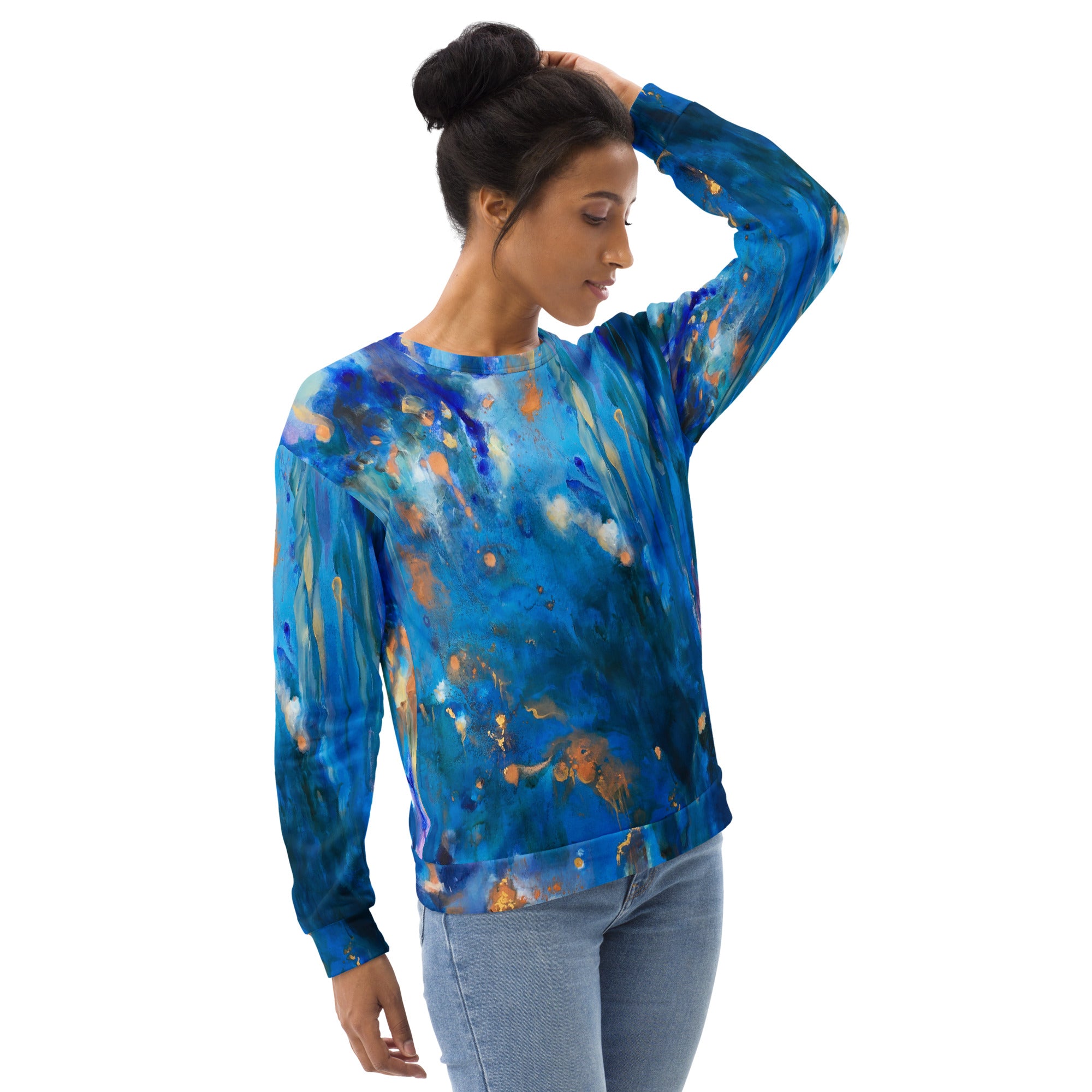 Each unique, all-over printed sweatshirt is precision-cut and hand-sewn to achieve the best possible look and bring out the intricate design. What's more, the durable fabric with a cotton-feel face and soft brushed fleece inside means that this sweatshirt is bound to become your favorite for a long time.