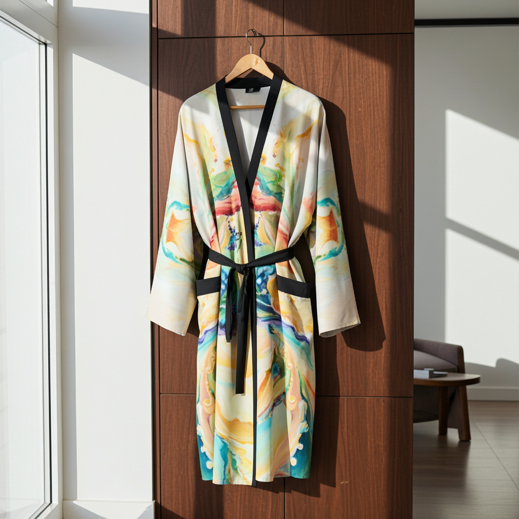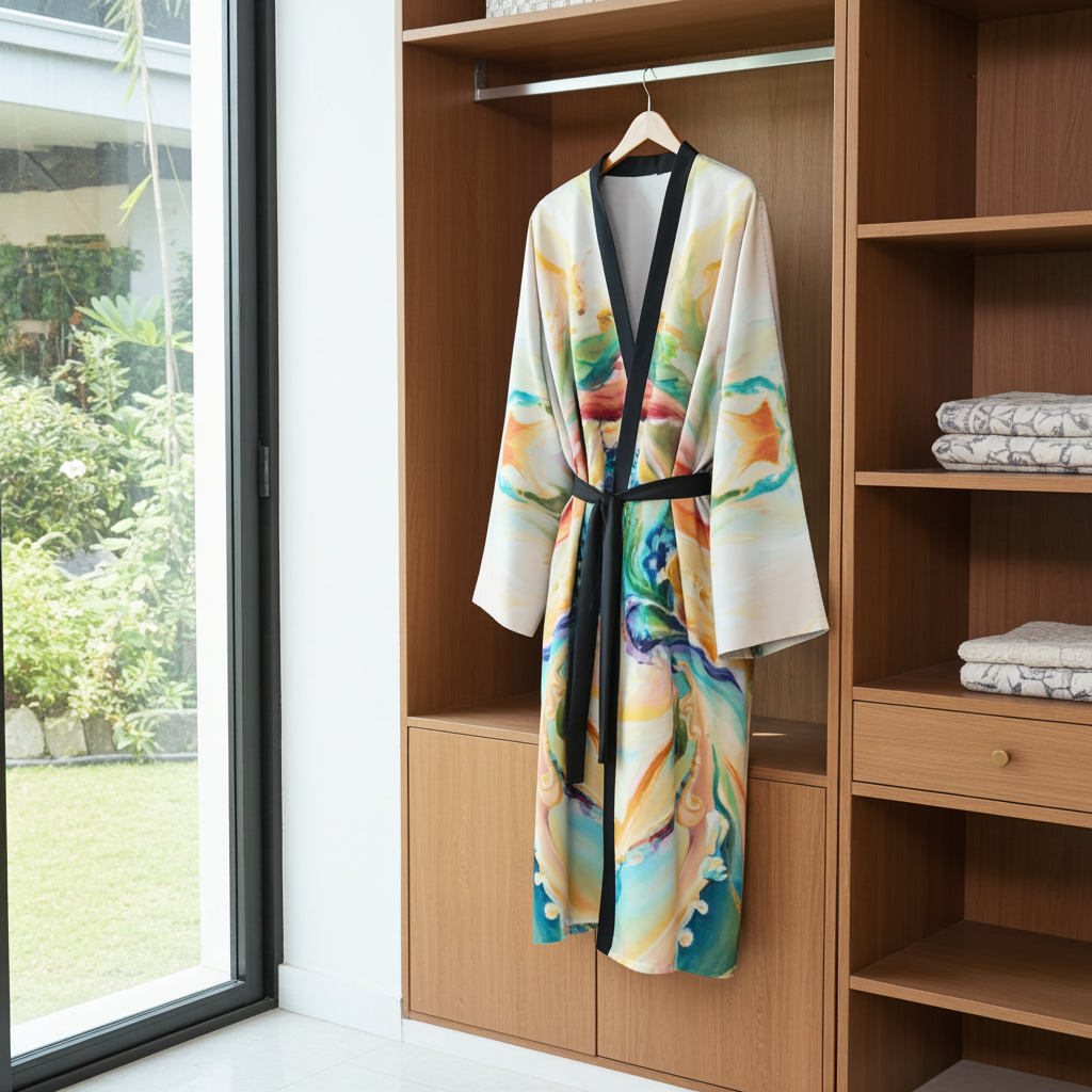 Perfect for champagne or by-the-fire eggnog, our custom printed peignoirs truly wrap you in art. The styles and uses for this robe are endless!