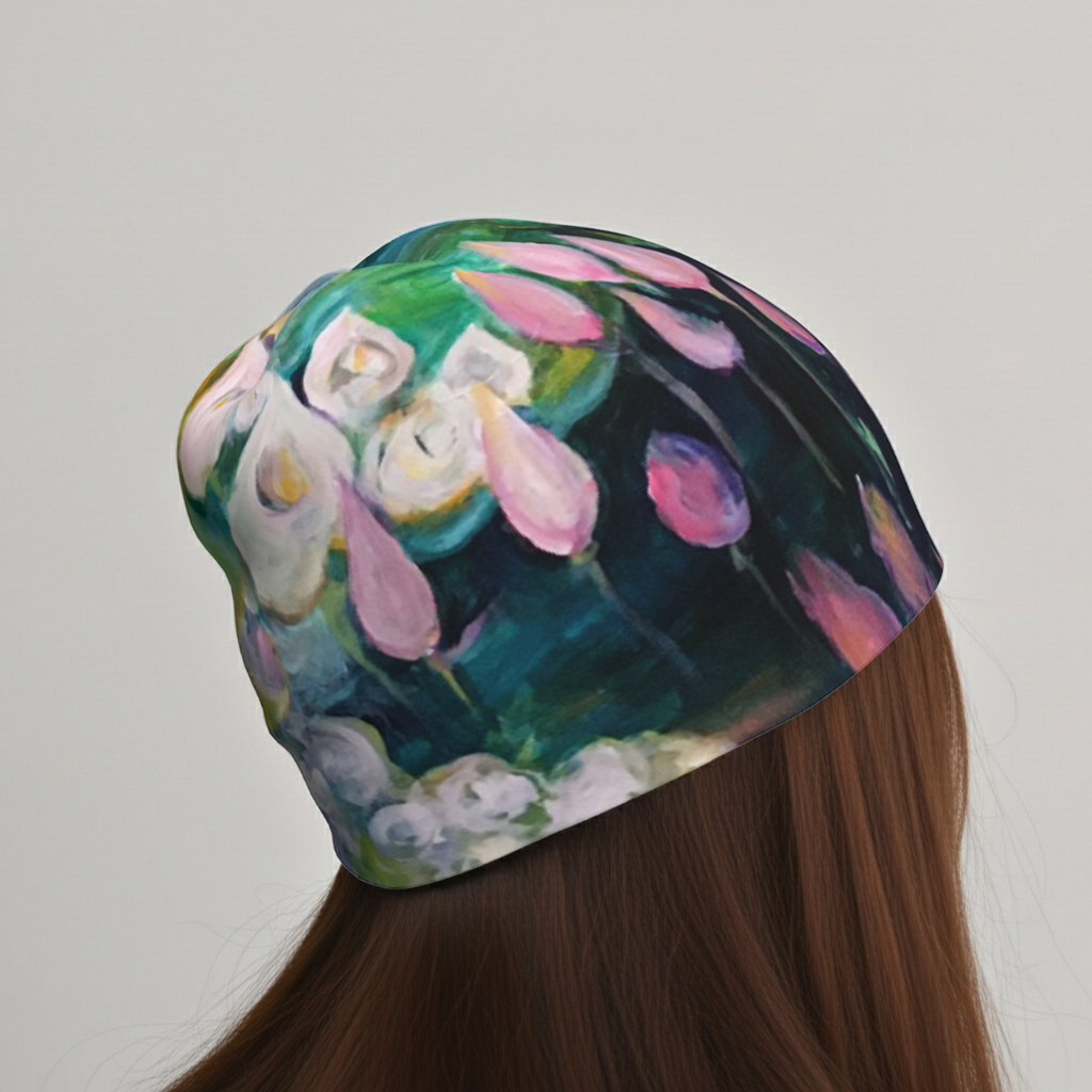 Our super comfortable, relaxed fit beanie in our best selling 'After the Rain' design. So 'Monet'!. Perfect for when it gets chilly or to help out on those rare bad hair days!